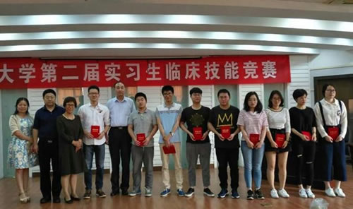本次竞赛分为初赛和复赛二个阶段,初赛与本学期临床实习集中教学检查同步进行,复赛选手从初赛胜出者中产生,并邀请七位临床专家担任复赛评委。复赛分理论考试、临床技能操作(系统体格检查、内科技能操作、外科技能操作三站循环)和专家面试三个赛程,采用随机抽签、现场亮分与角逐淘汰的方式进行。本次竞赛为实习学生提供了一个相互学习以及师生共同交流的平台,对强化实习生临床技能训练起到了助推作用。