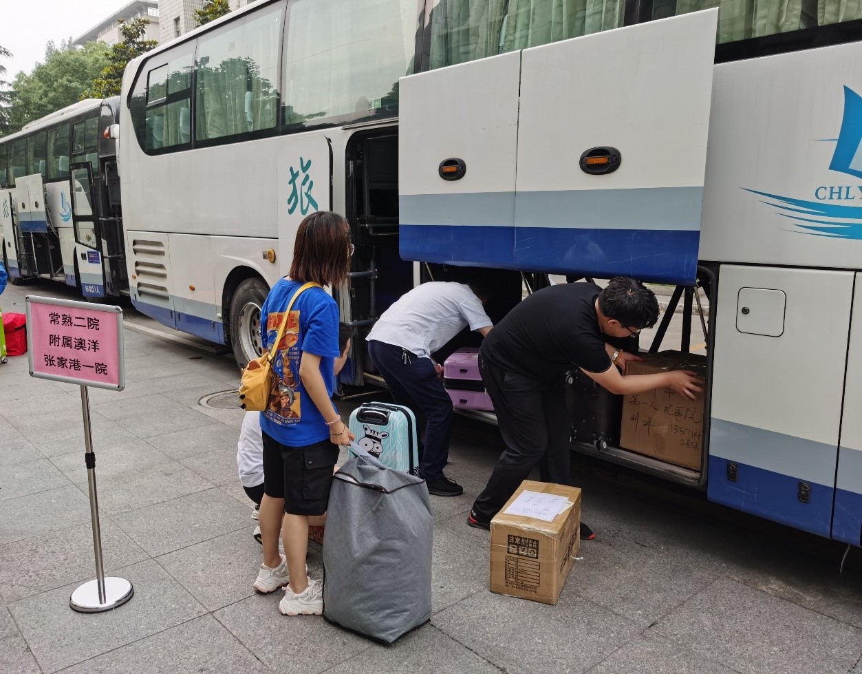 的有关负责同志提前来到现场进行协调,赴点返校的学生年级辅导员也提前到达现场,引导学生安全有序装运行李启程,及时为赴点学生和运输车辆的司机们做好各项服务工作。上午7时前,36辆赴点客车准时从学校北固校区和校本部分别发车,离校前往啪啪啪临床教学基地各实习点。同日去年6月赴点临床实习的445名医科学生顺利完成毕业实习,也已随车安全返校。