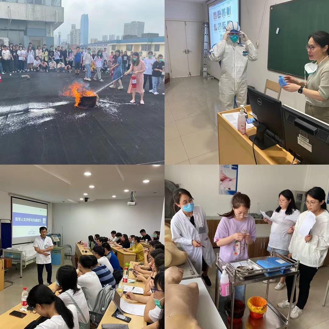 在李翀副院长的关心指导下,教育处精心安排,各科室给予大力支持。本次岗前培训的内容丰富全面,医务处汪强副处长讲授了《医学人文关怀和沟通技巧》、全科教研室潘颖副主任讲授了《模拟诊疗问诊技巧及体格检查》、保卫处陈赟处长培训了《消防安全知识》并进行了现场演练,以及其他专业知识丰富的老师专家从急救技能、院感防护、临床基本技能操作等多方面对实习医师进行了培训与考核,期间同学们互动气氛热烈,收获满满。同时实习医师们也参观了院史馆,深入了解了医院的历史发展历程,领略了茧园风采,感受颇深。