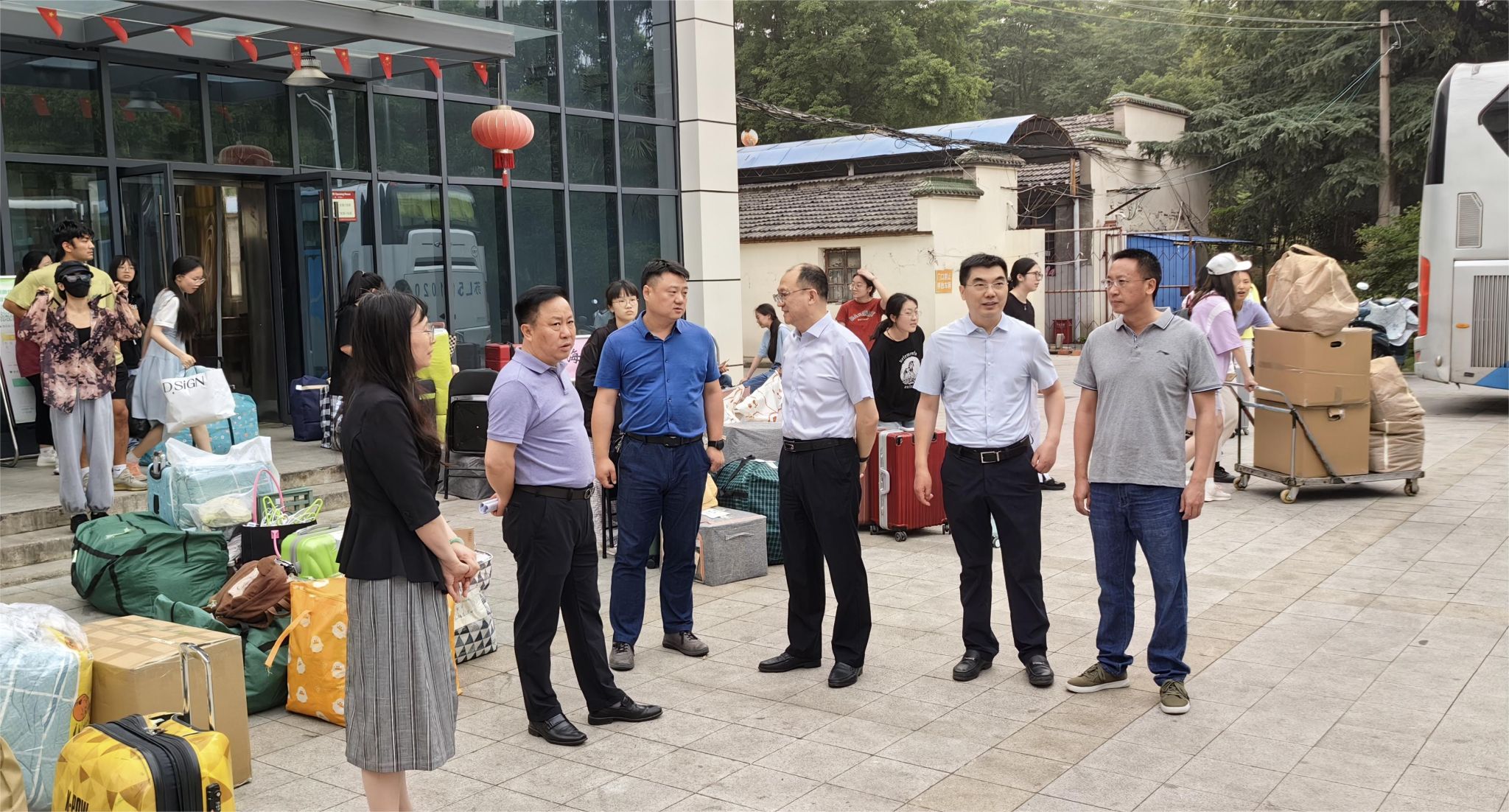 党委常务副书记袁国跃等负责人亲临现场指挥并欢送学生赴点实习。