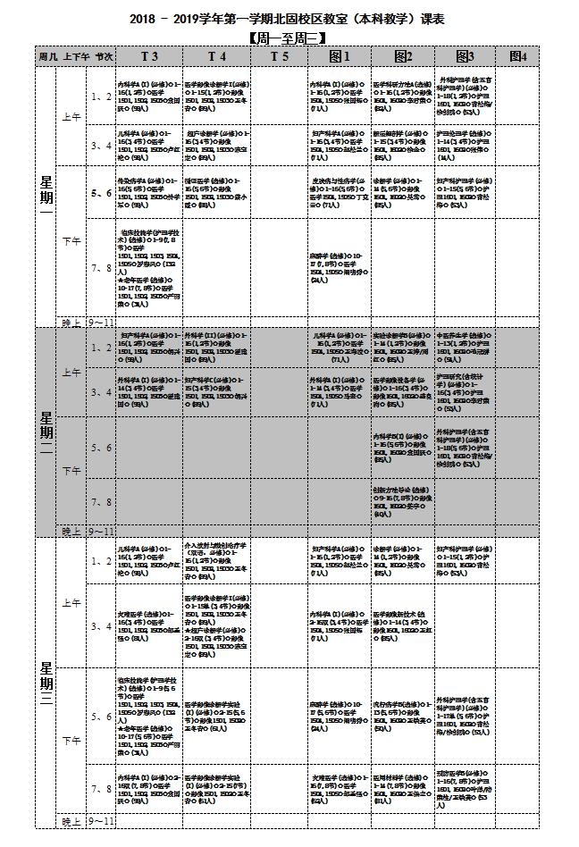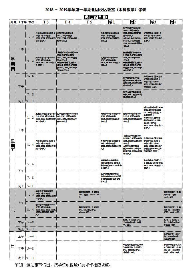 啪啪啪 北固校区2018 - 2019学年第一学期本科教学课表