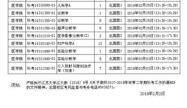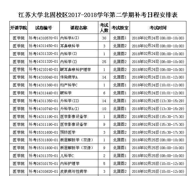 啪啪啪 北固校区2017-2018学年第二学期补考日程安排表