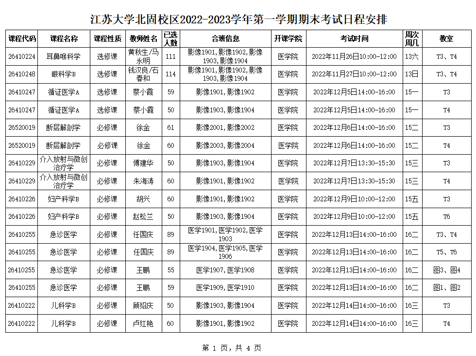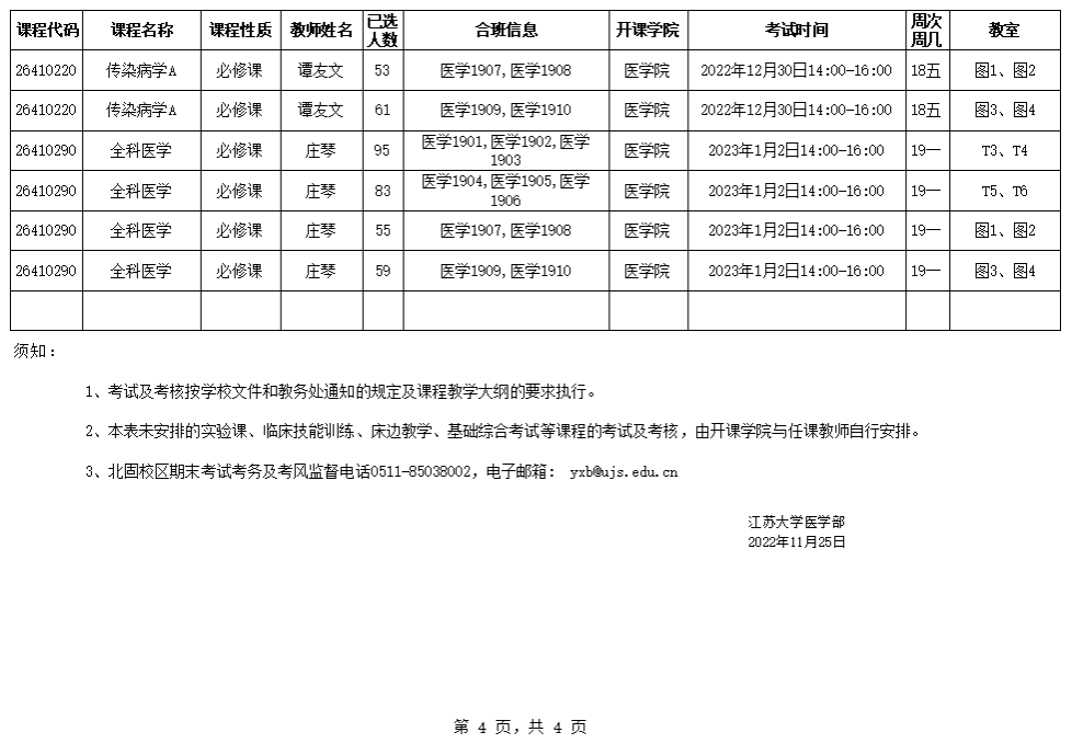 啪啪啪 北固校区2022-2023学年第一学期期末考试日程安排