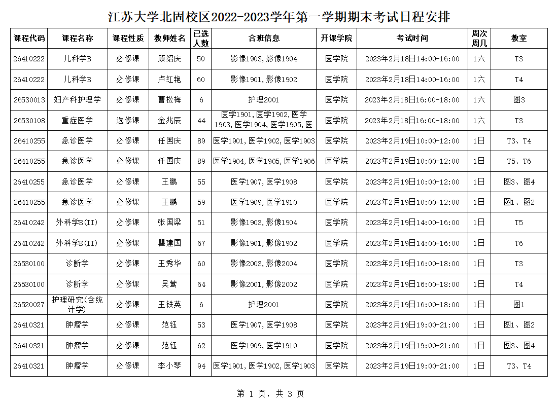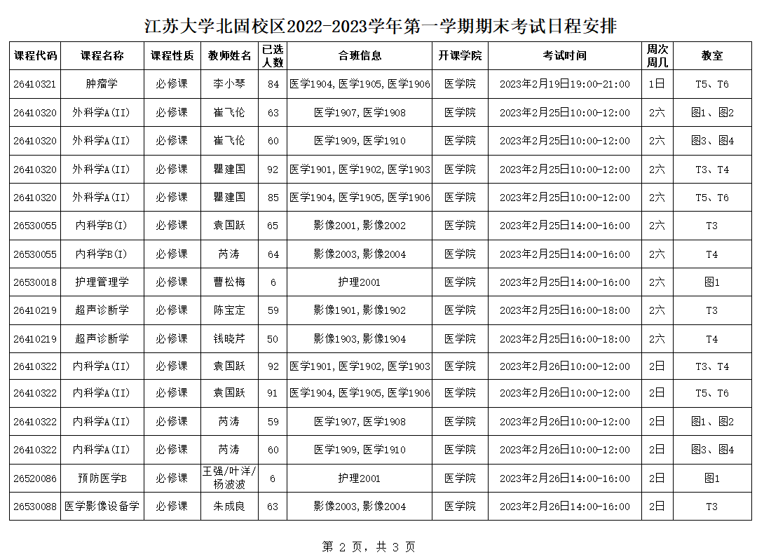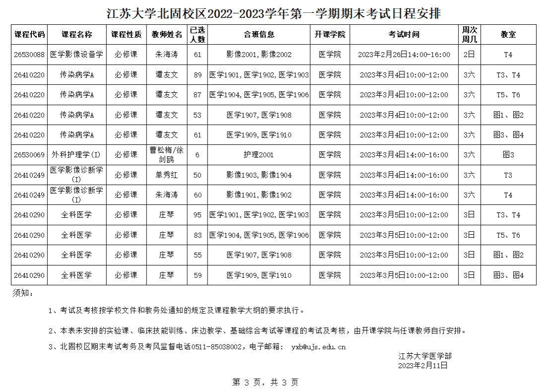 啪啪啪 北固校区2022-2023学年第一学期期末考试日程安排(2.11)