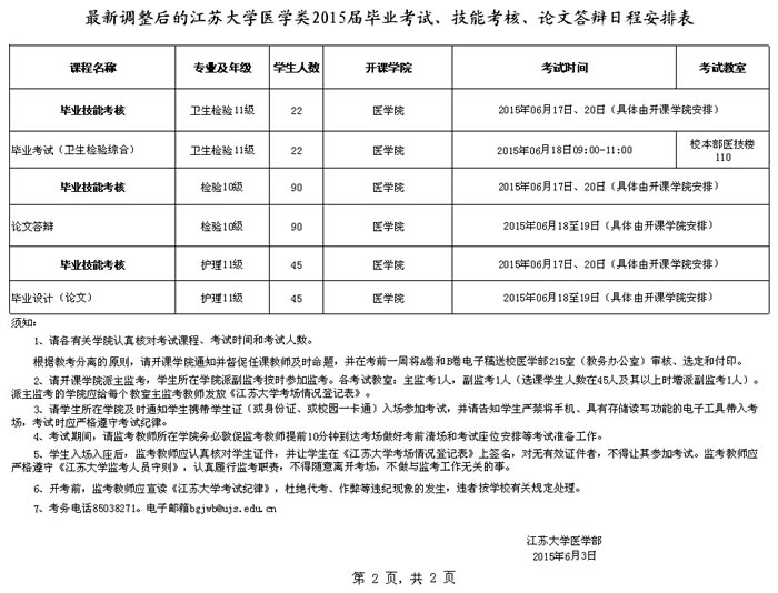 最新调整后的啪啪啪 医学类2015届毕业考试、技能考核、论文答辩日程安排表