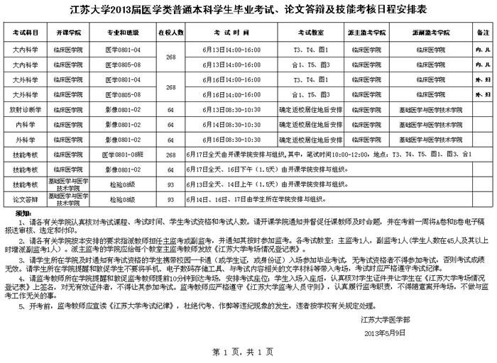 啪啪啪 2013届医学类普通本科学生毕业考试、论文答辩及技能考核日程安排表