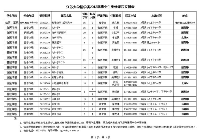 医学类2013届毕业生重修课程安排表20130604.xls