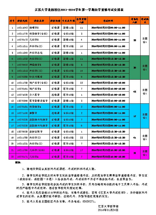 2013-2014-1北固校区自学重修考试安排表