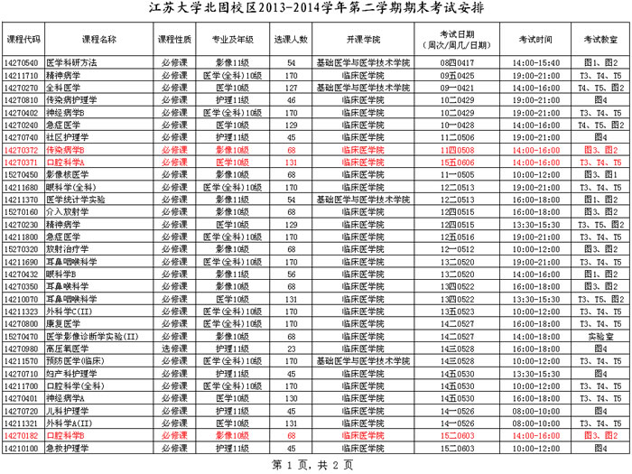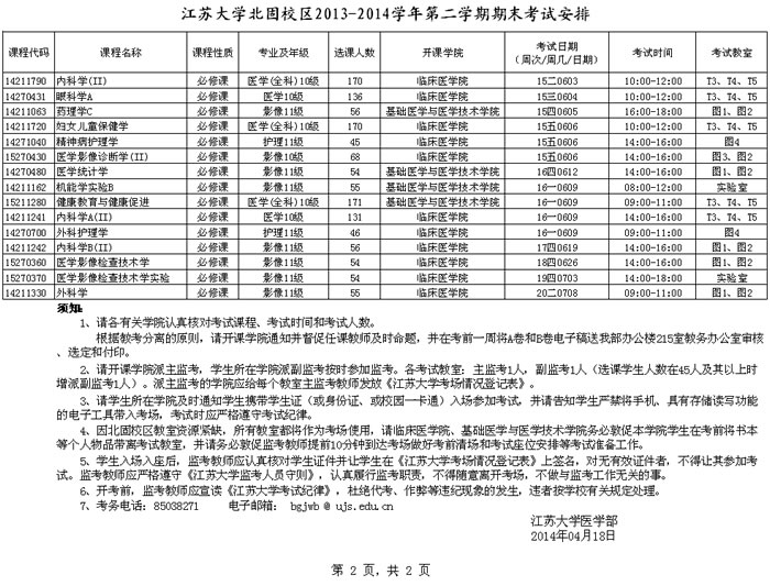 啪啪啪 北固校区2013-2014-2期末考试安排