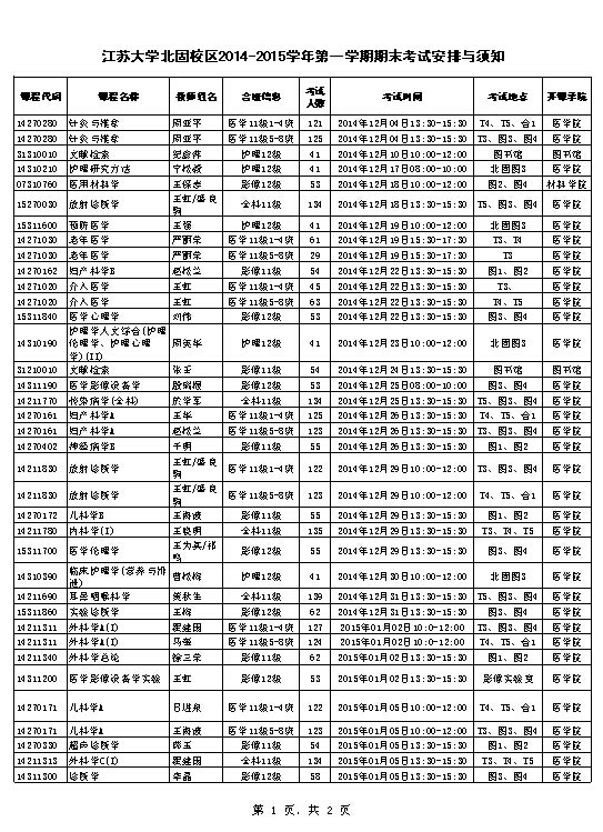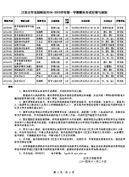 啪啪啪 北固校区2014-2015学年第一学期期末考试安排与须知