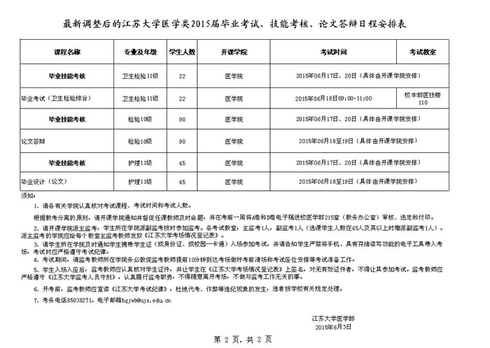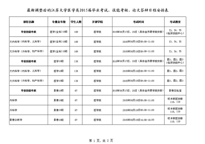 最新调整后的啪啪啪 医学类2015届毕业考试、技能考核、论文答辩日程安排表