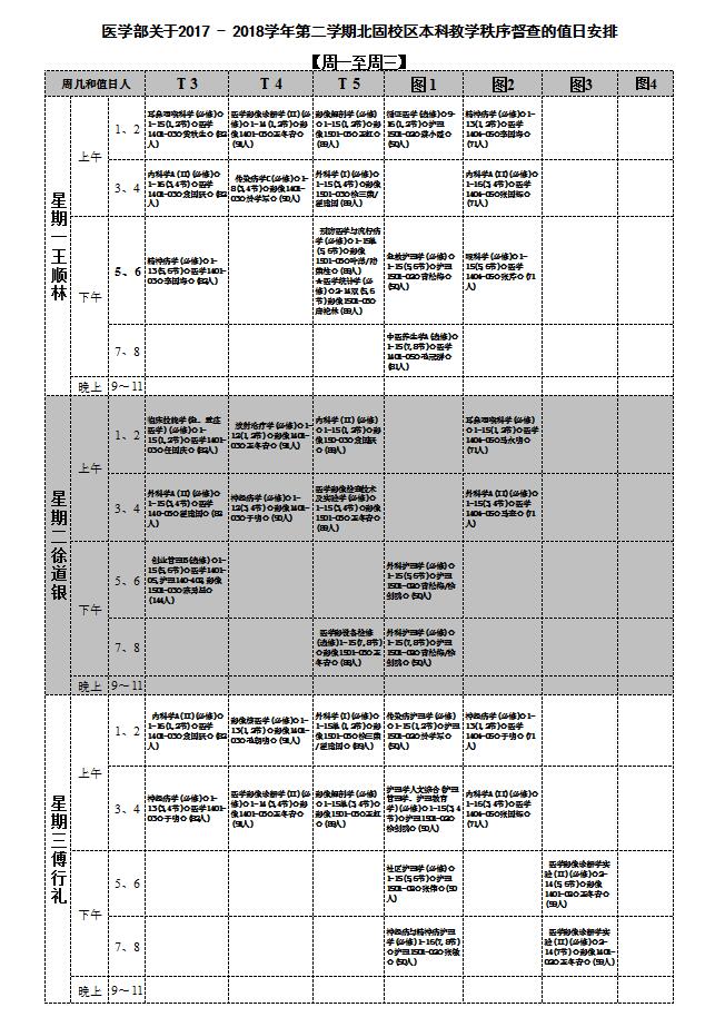 医学部关于2017-2018学年第二学期北固校区本科教学秩序督查的值日安排
