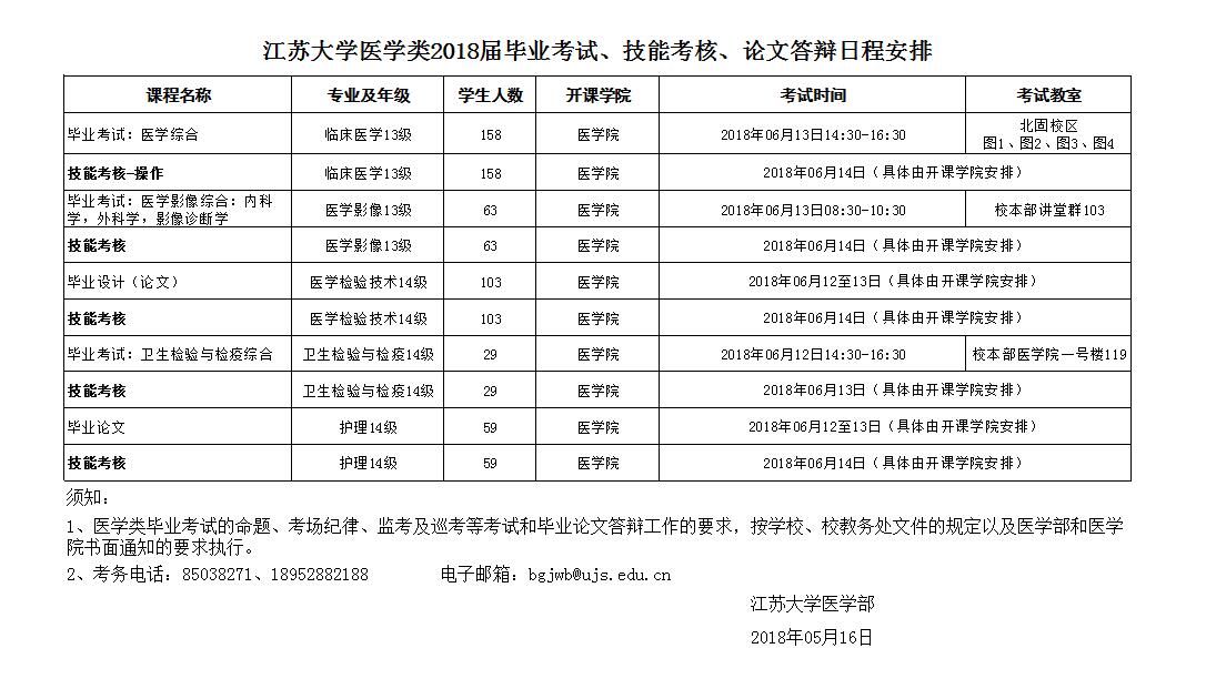 啪啪啪 2018届医学类毕业考试、技能考核、论文答辩日程安排