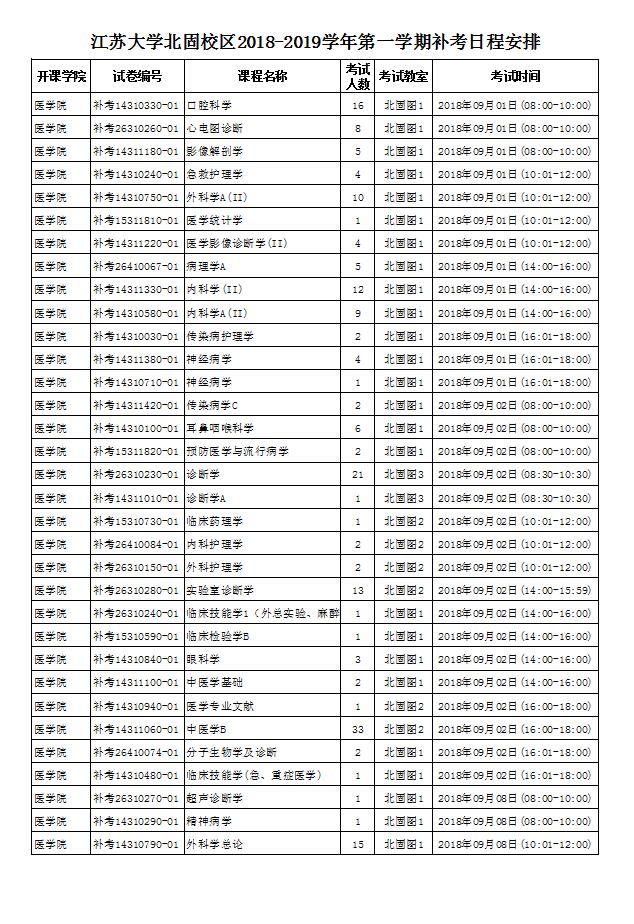 2018-2019学年第一学期的补考将于9月1日开始(补考日程安排见附件),现将有关事项通知如下: