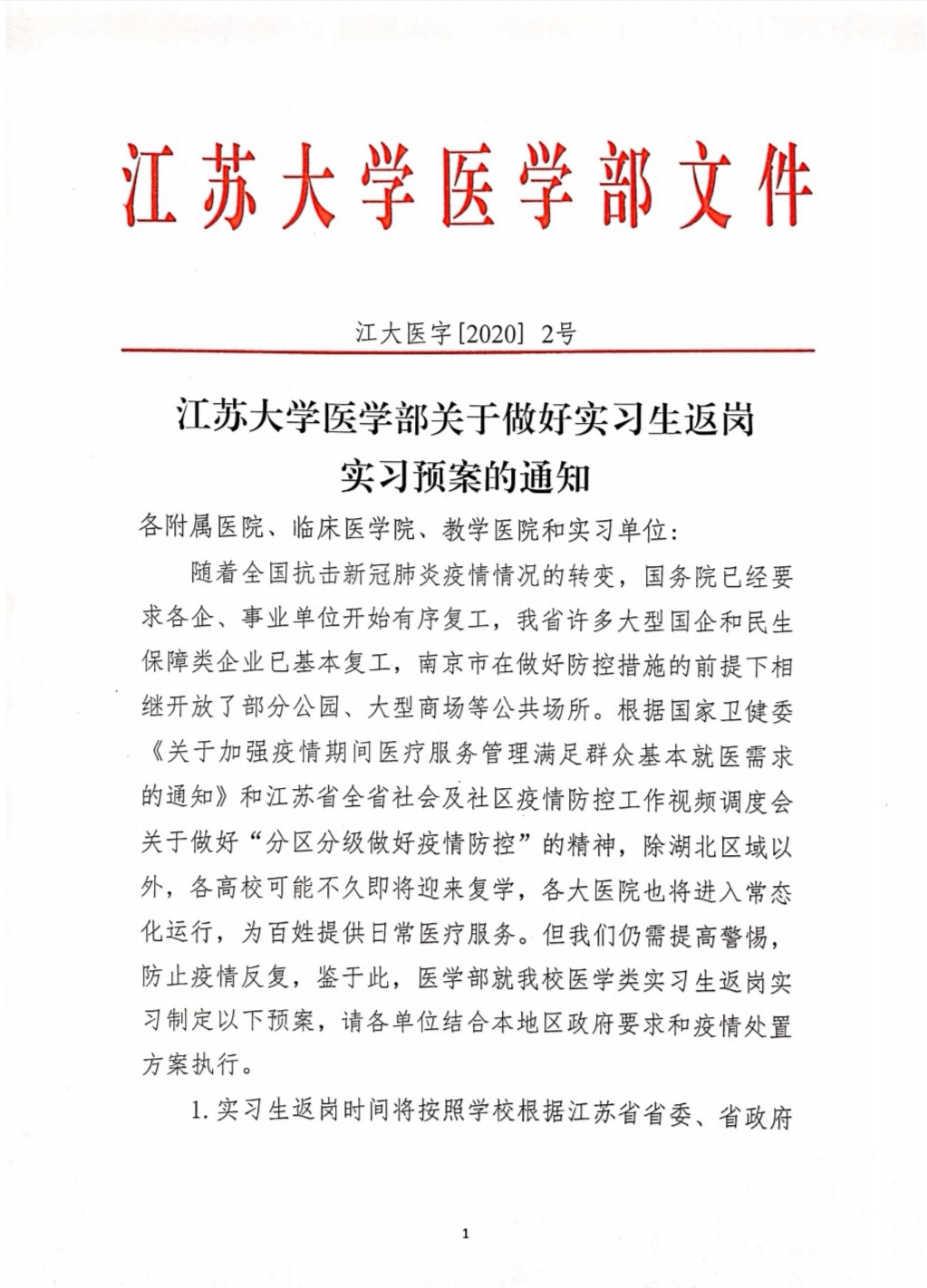 啪啪啪 医学部关于做好实习生返岗实习预案的通知